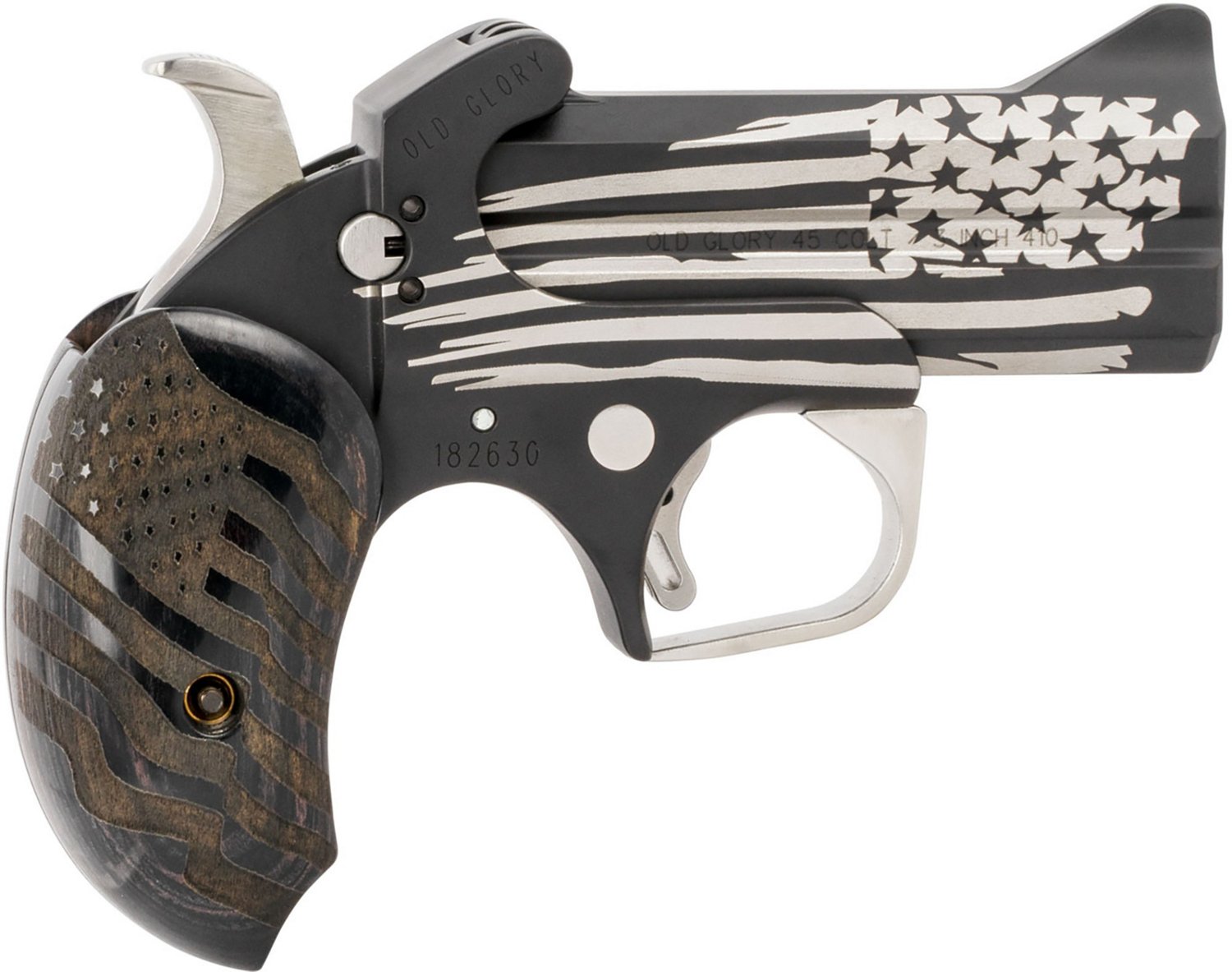 Style meets function with the Bond Arms Old Glory .45 Colt Pistol. The stainless steel double barrel and frame afford durability, while the extended grips provide comfortable handling.