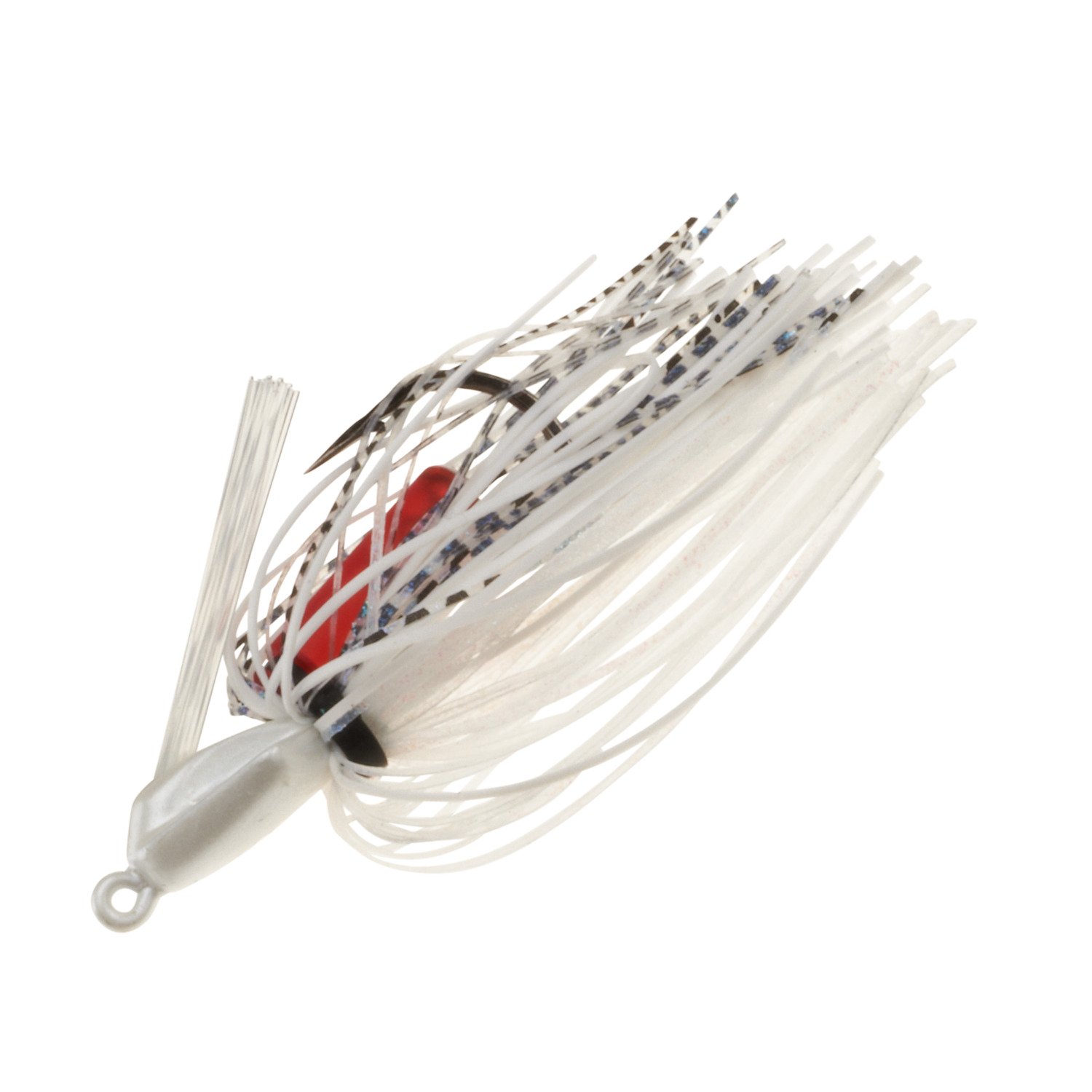 The BOOYAH 1/2 oz. Swim'n Jig is ideal for catching bass in thick, shallow cover. This jig features a strong weed guard to prevent weed collection and an arrowhead-designed jig head to pierce the water's surface.