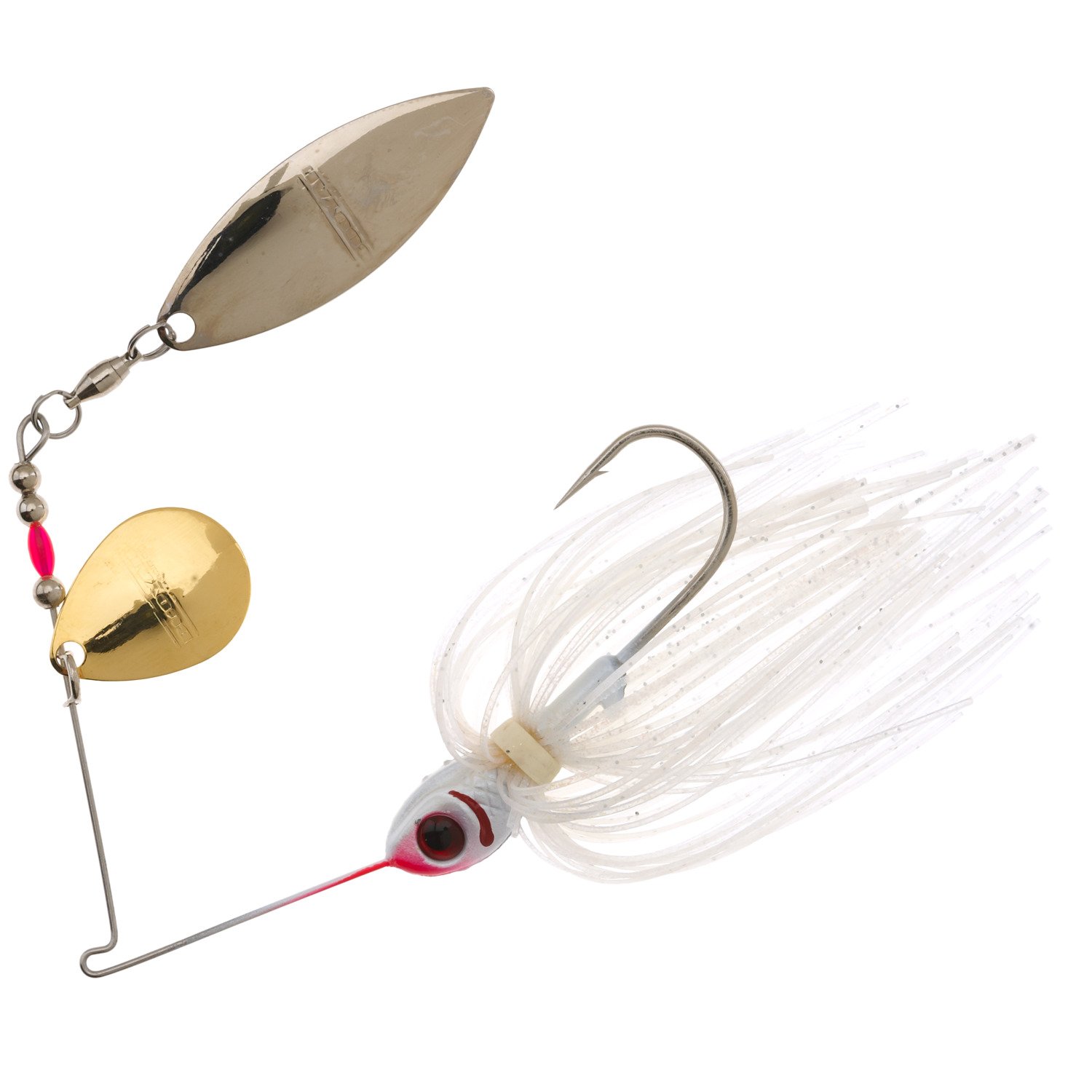 Catch largemouth, smallmouth and spotted bass with the BOOYAH 3/8 oz Tandem Blade Spinnerbait. The jeweler's-grade gold- and nickel-plated blades offer strength and durability, while the Flex wire alloy frame creates fish-enticing vibrations.