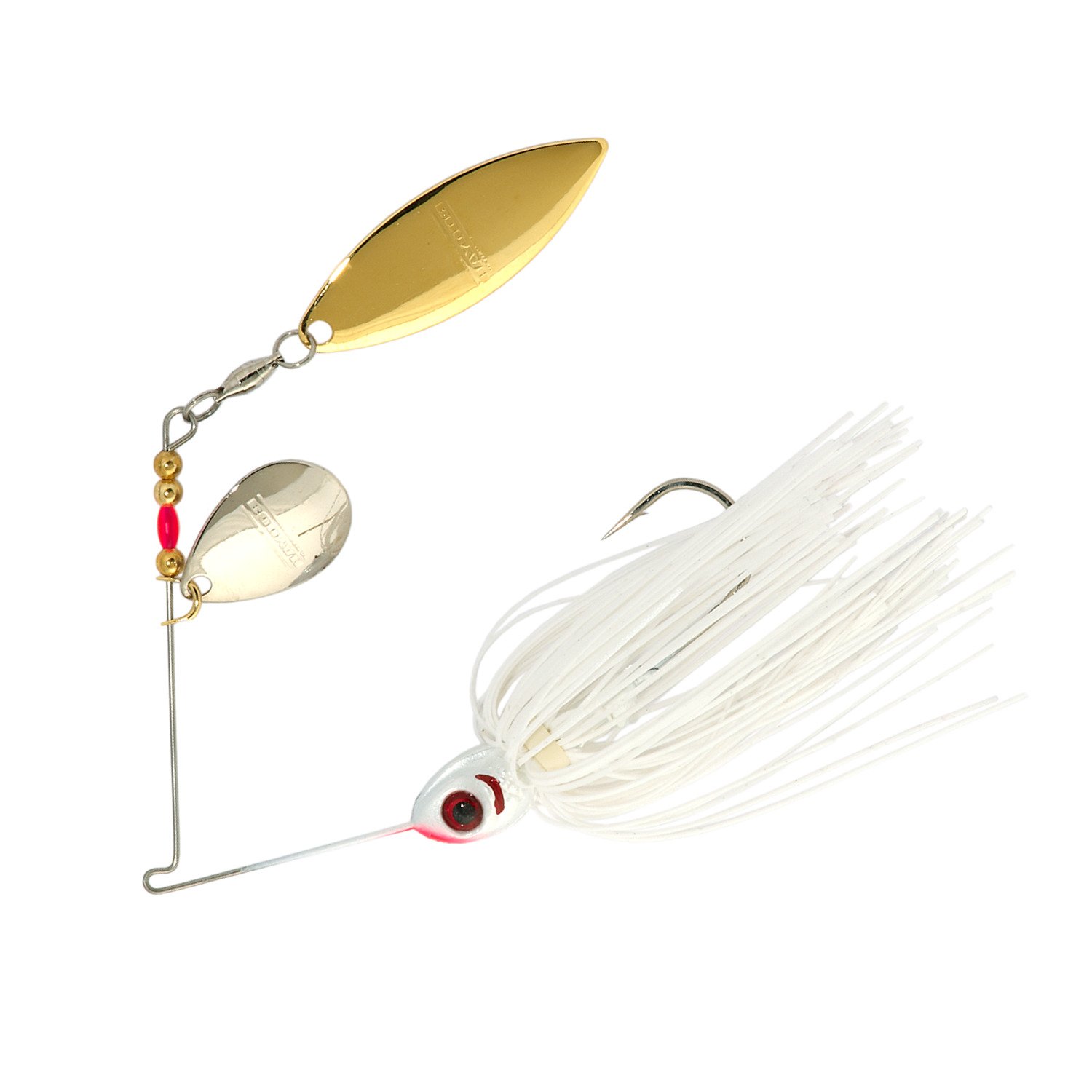 Catch largemouth, smallmouth and spotted bass with the BOOYAH 3/8 oz Tandem Blade Spinnerbait. The jeweler's-grade gold- and nickel-plated blades offer strength and durability, while the Flex wire alloy frame creates fish-enticing vibrations.