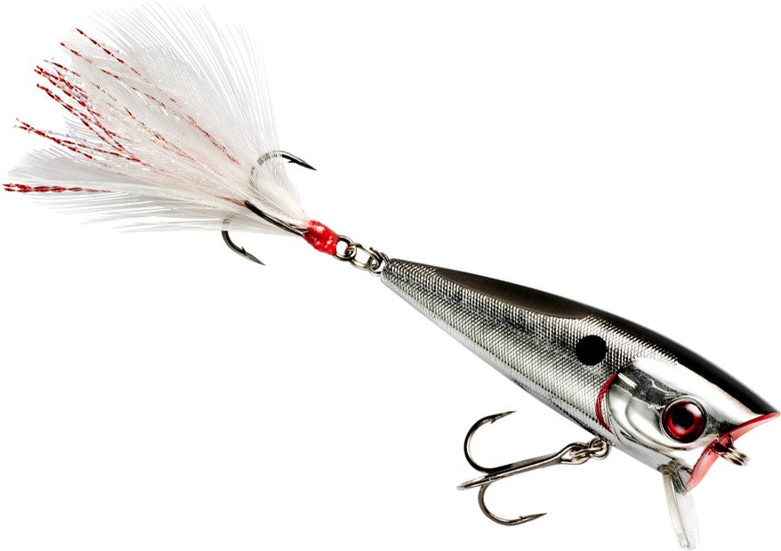 Lipped popper design with a cupped and shaved mouth that lets you work it on top and split water