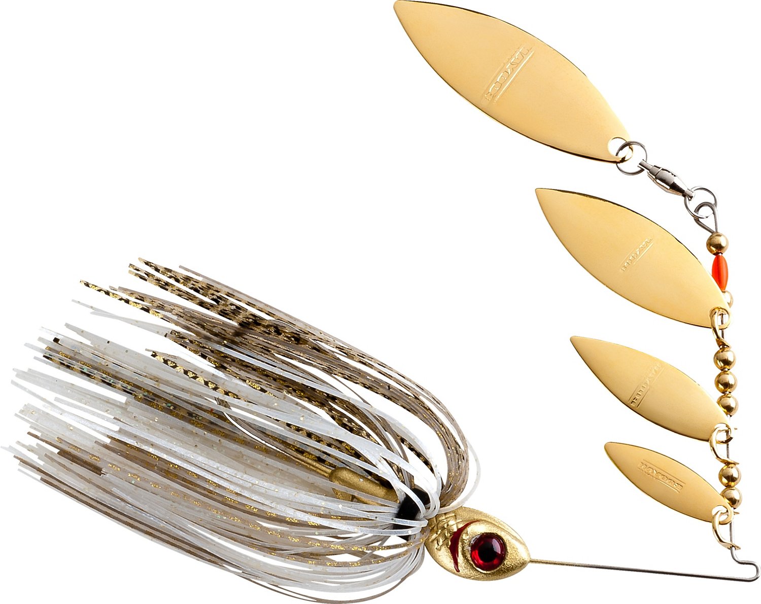 The BOOYAH Super Shad 3/8 oz Multi Willow Blade Spinnerbait has a profile designed to attract freshwater bass. The 4 willow blades create fish-attracting vibrations, while the Mustad Ultra Point size 4/0 single hook secures catches.