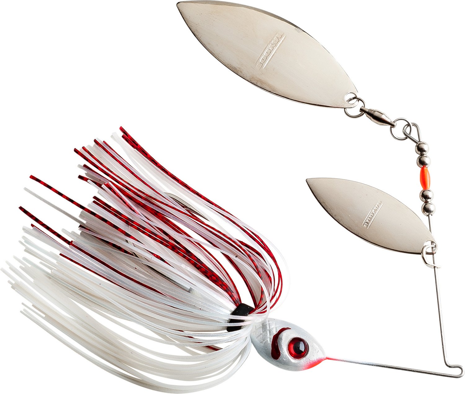 Freshwater bass don't stand a chance against the BOOYAH Tandem Blade 3/8 oz Spinnerbait. With durable stainless-steel construction, continuous smooth spinning action and realistic features, this bait is sure to attract bites. The Mustad Ultra Point hook will lock in the catch. 3/8 ounces. Hook size: 4.