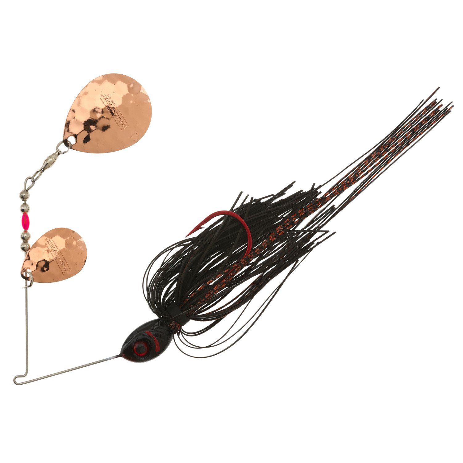 Attract largemouth bass with the BOOYAH Tux and Tails 1/2 oz Double Colorado Blade Spinnerbait. The jeweler's-grade double Colorado honeycomb blades create fish-enticing flashes and vibrations. This spinnerbait features a 55-strand Bio-Flex silicone skirt with a built-in trailer for lifelike movement.