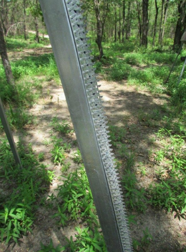 Help keep your deer feeder free of varmints with the Boss Buck Shark Teeth™ Deterrent Strips 3-Pack. These strips are made with steel spikes and can be broken into small sizes to cover feeder legs, tops, sides and more. Each strip is 36" long and 1-1/2" wide. Includes 9 self-tapping screws.