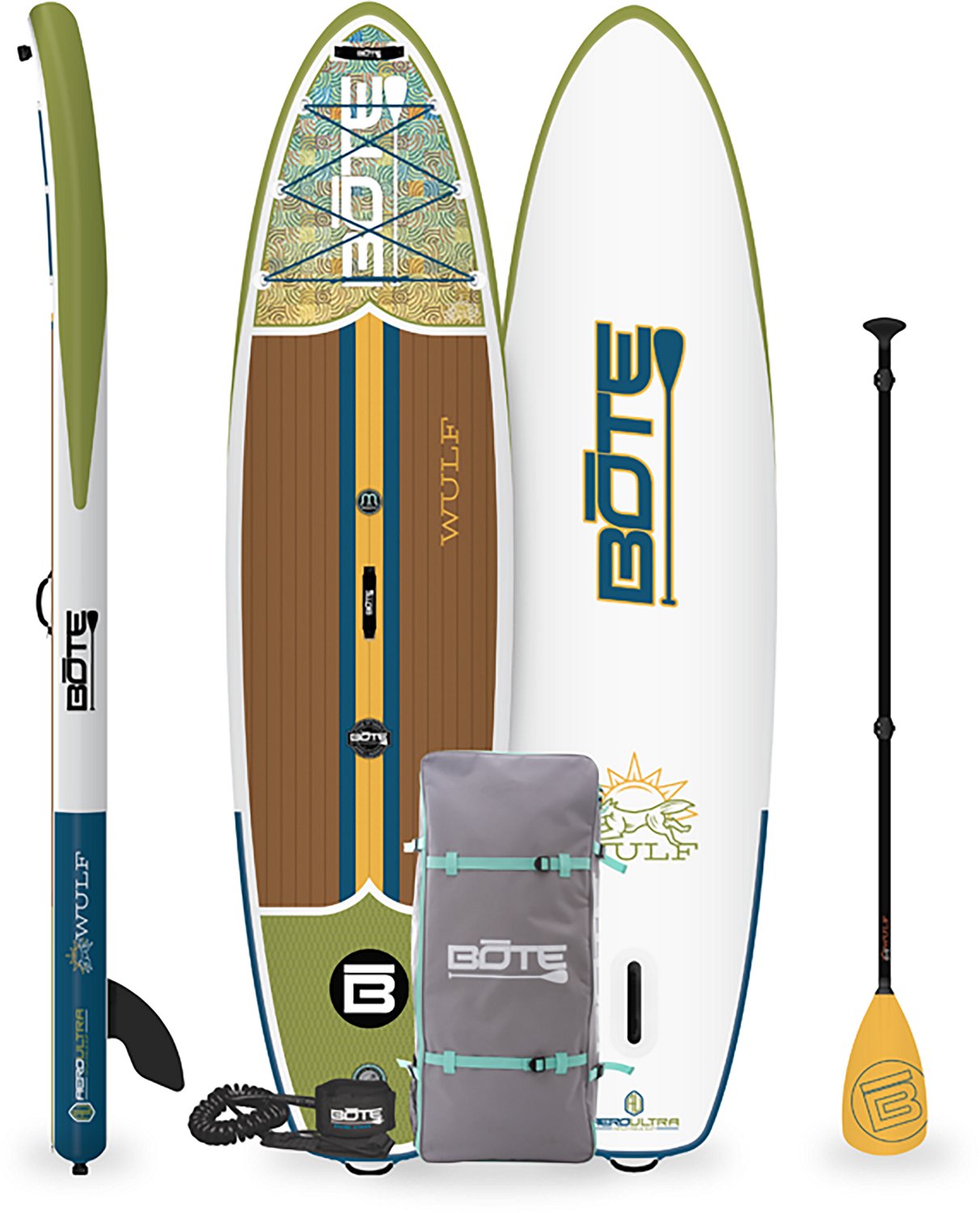 Get prepared to enjoy the open water when you reach for the BOTE Board WULF Aero Native Floral Inflatable SUP Paddleboard. The durable, inflatable construction encourages easy portability and lasting use. The removable 10-inch center fin helps ensure a stable performance. The BVA foam deck pad provides a soft and grippy texture for secure footing, while the coiled leash keeps your board close and accessible. Weighs 20 pounds.
