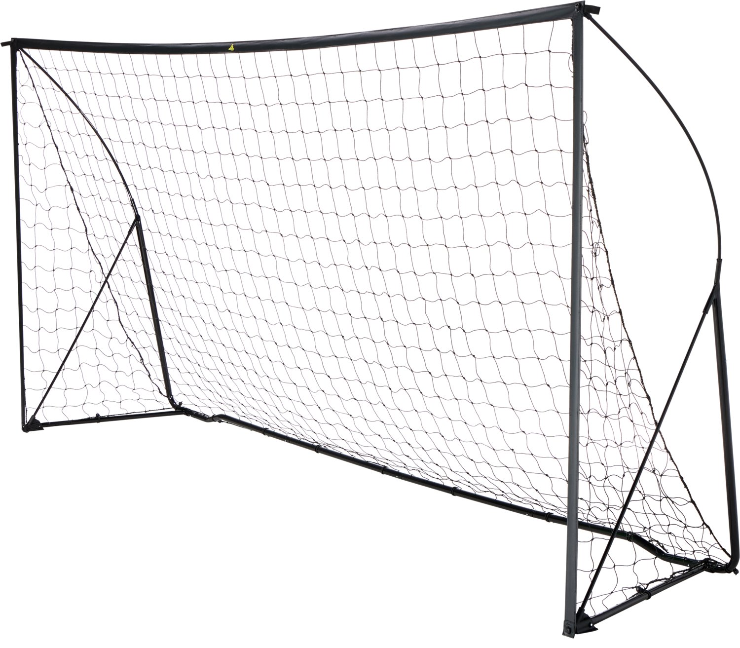 Get ready to play with the Brava Instant Setup 12 x 6 Soccer Goal. Set up instantly for soccer balls. Its 1 inch steel frame improves security, and 12.7 millimeter fiberglass net keeps maintenance low. The 5-piece ground pegs increases stability, and 45-ply PE net remains durable in all weather. Easily assemble in 3 minutes.