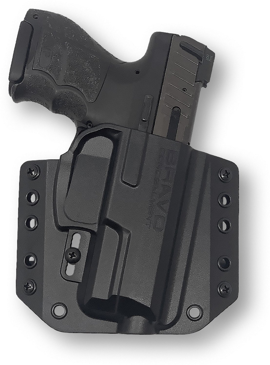 Conceal carry confidently with the Bravo Concealment: HK VP9sk OWB Holster. The polymer construction affords durability, while the 10 degree forward cant improves comfort and concealment. The adjustable retention offers user convenience. Whether you open carry or conceal carry, the BCA OWB holster rides high and close to the body for maximum concealment while perfectly fitting your gun.