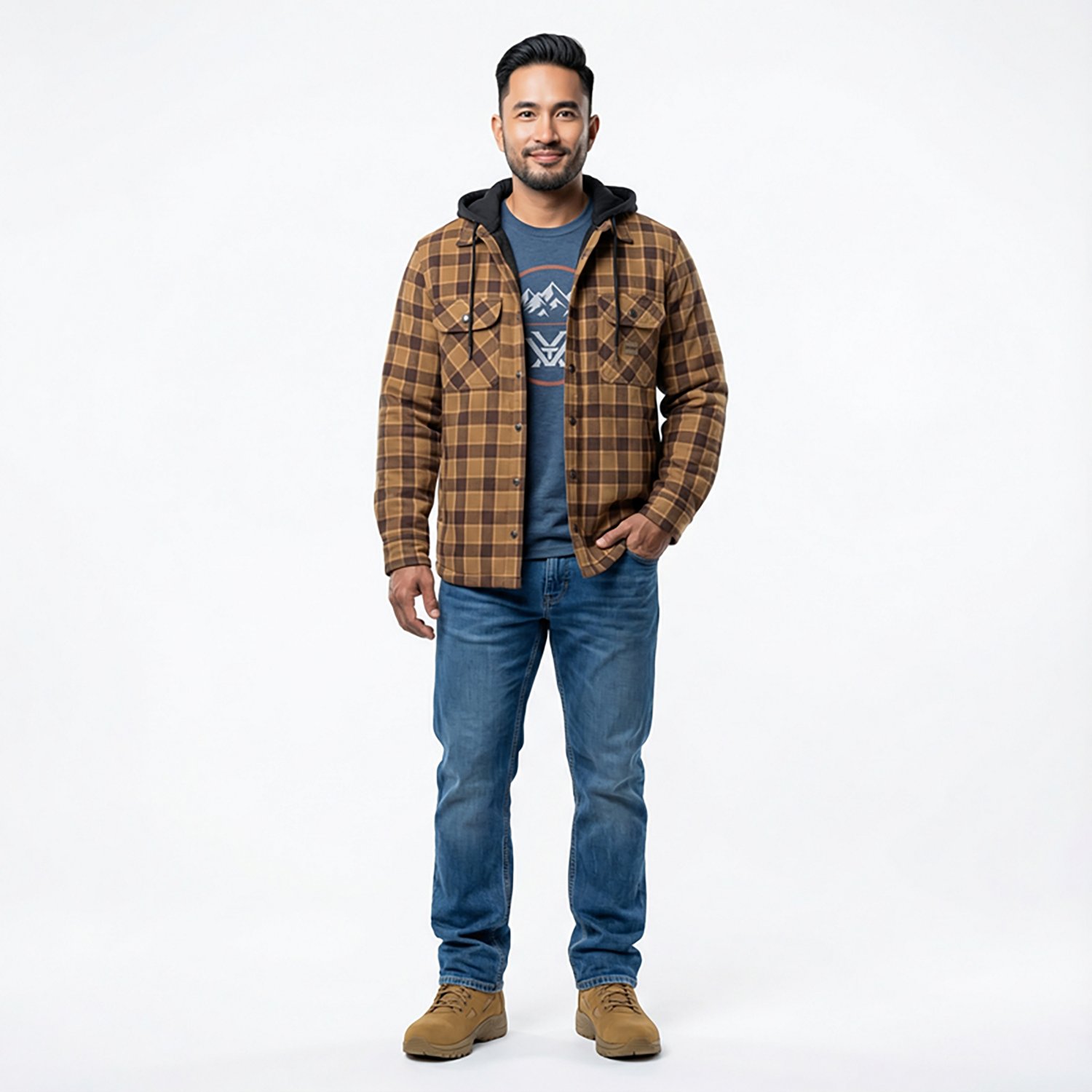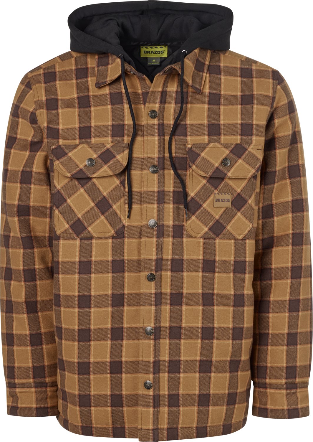 Stay warm on the job with the Brazos Men's Blacksmith Insulated Hooded Jacket. The cotton yard dyed body, polyester liner and synthetic insulation keeps you warm. A fleece-lined hood adds extra warmth and comfort.