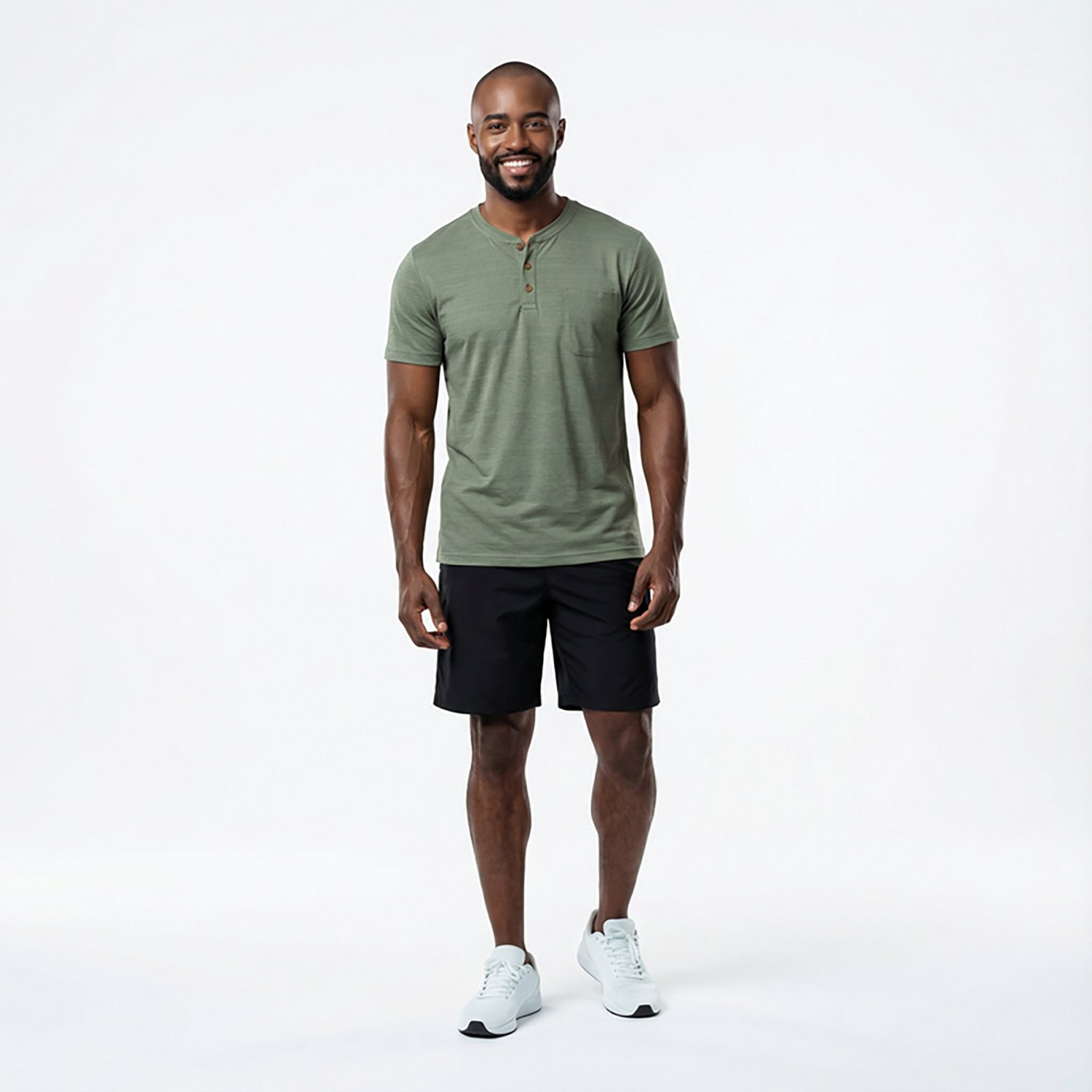 Keep your work essentials within reach with the Brazos Men's Contractor Pocket Short Sleeve Henley T-shirt. This soft t-shirt is made of a moisture-wicking blend of cotton and polyester for lightweight comfort. It also has anti-odor and stain-resistant properties to help you stay fresh all day. The UPF 30 sun protection shields your skin from UV rays.