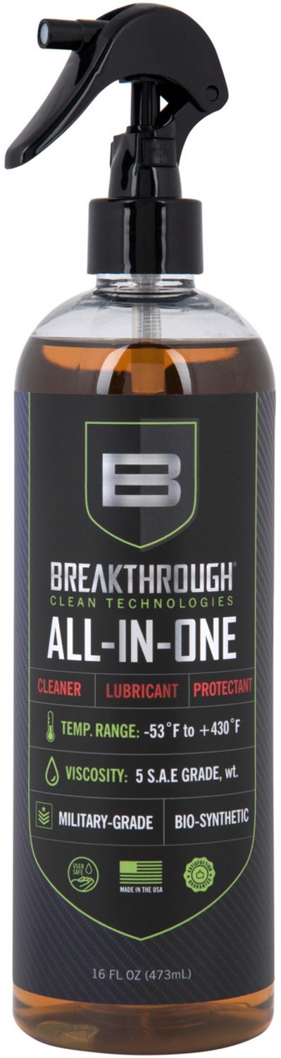 The Breakthrough Clean Technologies 16 oz. Battle Born Bio-Synthetic All-in-One Gun Cleaner is great for cleaning your firearms. Designed to eliminate build-up, grime and dirt, this gun cleaner is ideal for tools, auto, metal, locks, knives, bicycles and more. The gun cleaner is also designed to prevent rust and corrosion from building up on your firearm.