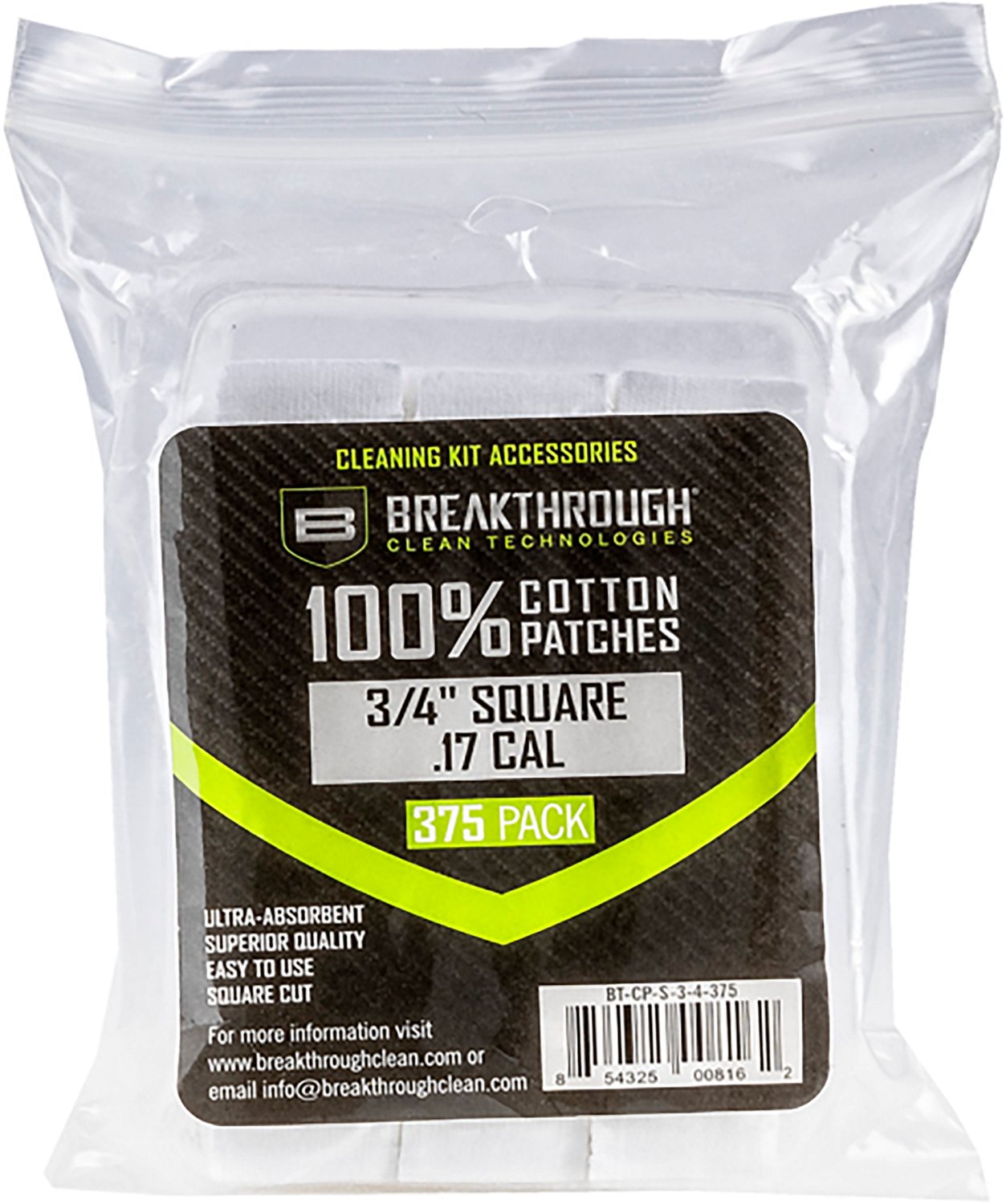 Keep your firearms in working order with the Breakthrough Clean Technologies 0.75 in Square Cotton Patches 375-Pack. Made of 100% woven cotton, these patches come in pre-cut squares for easy and convenient cleaning.