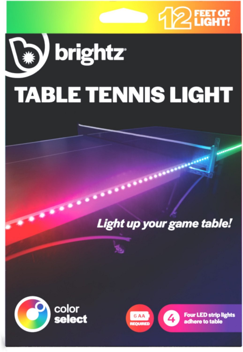 Light up your game room with the Brightz Table Tennis Glow Light Set. The lights change color based on your preferences, and they can be placed on most surfaces with their adhesive backings. The lights are made of ABS plastic and polyurethane for durability.