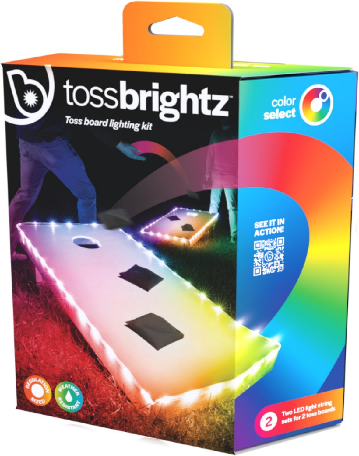 Don't let darkness end your game early with the Brightz TossBrightz LED Color Select Cornhole Lighting Kit. The bright LED bulbs light up your regulation-sized cornhole board, while the weather-resistant construction affords lasting use.