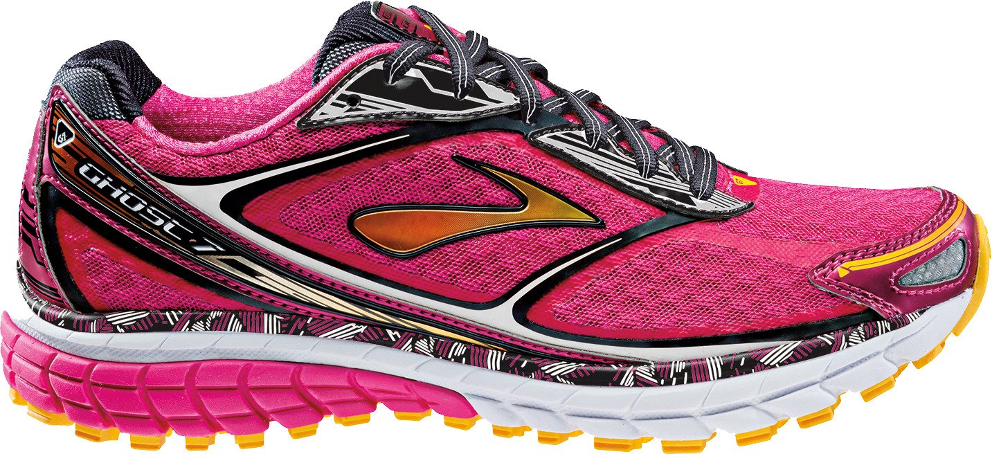 The Brooks Women's Ghost 7 Running Shoes feature Element mesh uppers that provide breathability and moisture management, and HPR Plus outsoles with soft, blown rubber forefoot cush pods that deliver traction. Full-length BioMoGo DNA and cushsole midsoles with full-length, segmented crash pads ensure a comfortable ride, and Omega flex grooves offer flexibility. Lace closures. IDEAL pressure zones. 8.6 oz. per shoe.