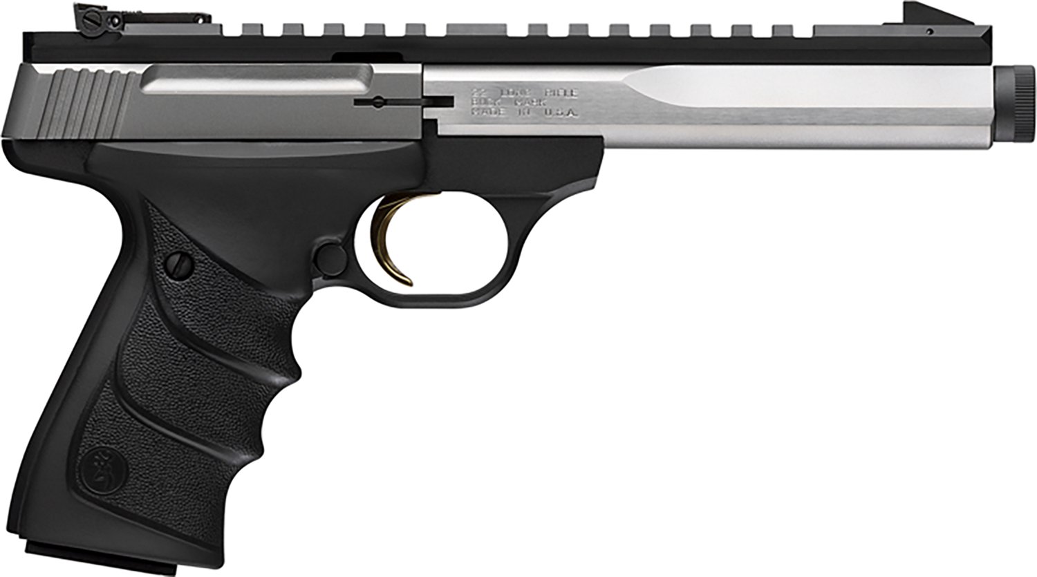 Arm yourself with the Browning Buck Mark Contour SR .22 LR Single Action Pistol. It is single action with a 10-round capacity. The stainless steel threaded barrel is 5.63-inches long, and its aluminum slide is serrated. The Black URX grip finishes off the design.