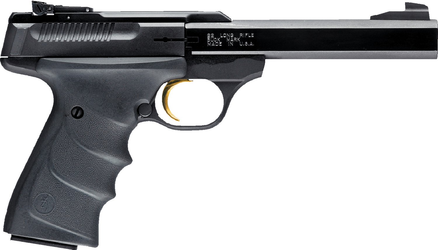 Boasting a slab-side barrel design and polished flats, the Browning Buckmark Standard URX .22 LR Pistol is built with an aluminum-alloy frame and ambidextrous, textured Ultragrip RX grips with finger grooves. The Pro Target sights are adjustable, and the pistol includes manual and magazine safeties. CA compliant.
