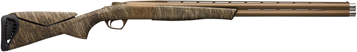 Stay ready for the field with the Browning Cynergy Wicked Wing MOBL 12-Gauge 26 in OU Break Action Shotgun. This break action firearm boasts a 26-inch vent rib barrel with a Burnt Bronze Cerakote finish and features a Mossy Oak Bottomland fixed adjustable comb spacer stock. The construction is complemented with an Ivory Bead front sight.