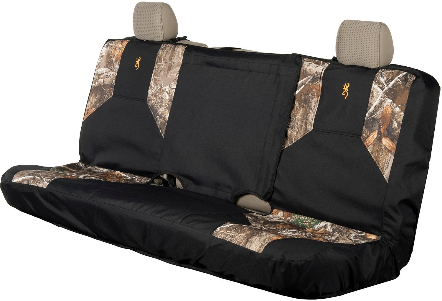Decorate your vehicle with the Browning Full Bench Excursion OS Seat Cover. The durable polyester construction helps defend against stains and damage, while the fastening system offers security.