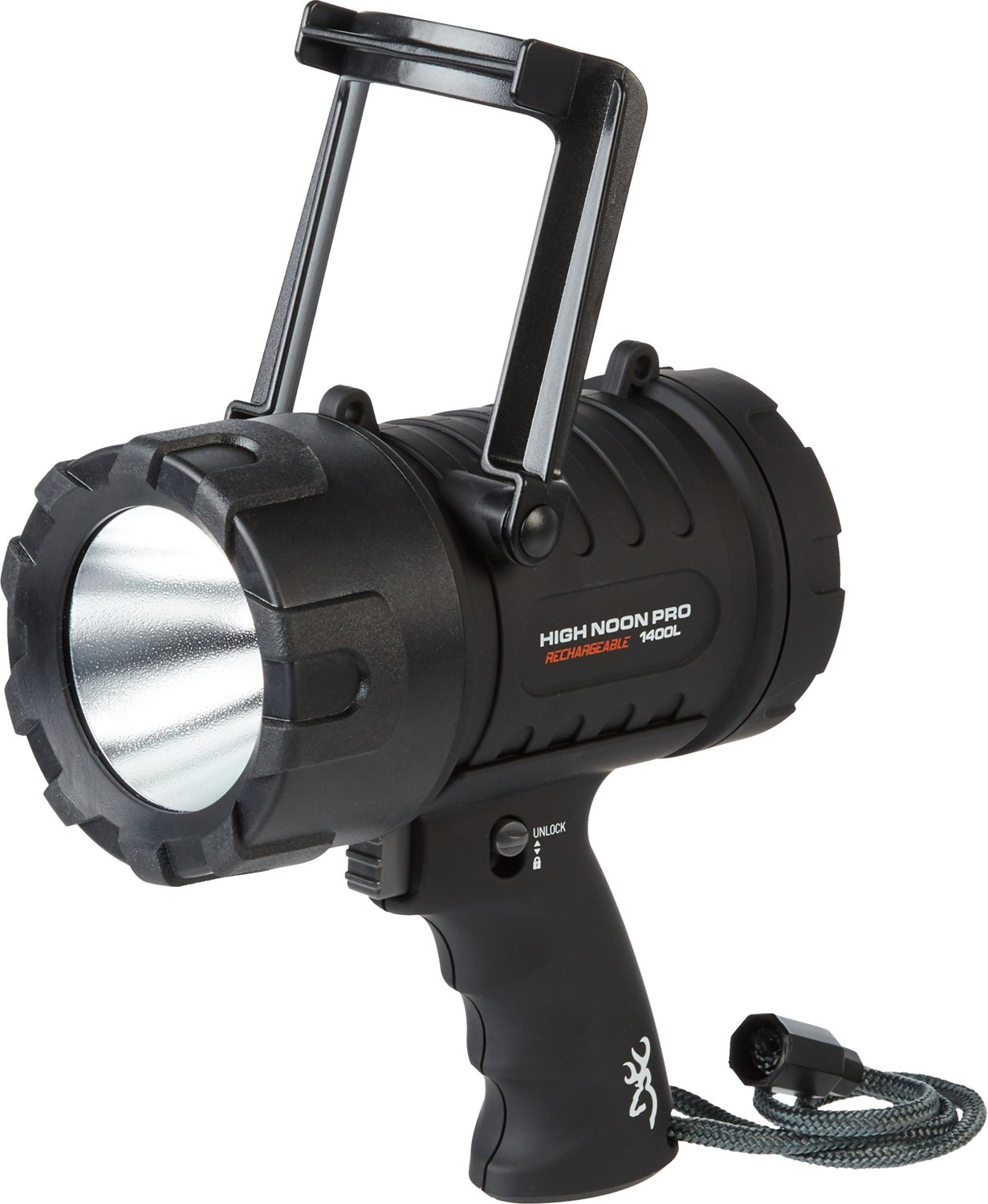 Keep your campsite lit with the Browning High Noon Pro Spotlight. It features low, high and strobe light modes and has a dual-fuel design that allows you to recharge the light with the USB cable or use a backup battery. This light can even double as a power bank to keep your cell phone or GPS charged. It's made from durable polycarbonate housing with waterproof protection.