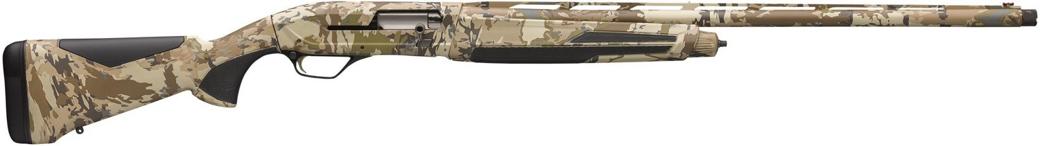 The Browning Maxus II 12 Gauge Semiautomatic Shotgun has an Auric camo stock and a 28-inch barrel. It also has a 3.5-inch chamber, 2-position crossbolt safety and an Inflex technology recoil pad.