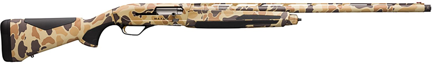 The Browning Maxus II 12 Gauge Semiautomatic Shotgun boasts semiautomatic action and has a 4-round capacity. It's built with a back-bored vent rib barrel, aluminum receiver and a synthetic stock with overmolded grip panels. Fiber optic front and ivory mid bead rear sights, lighting trigger and a crossbolt safety complete the design.