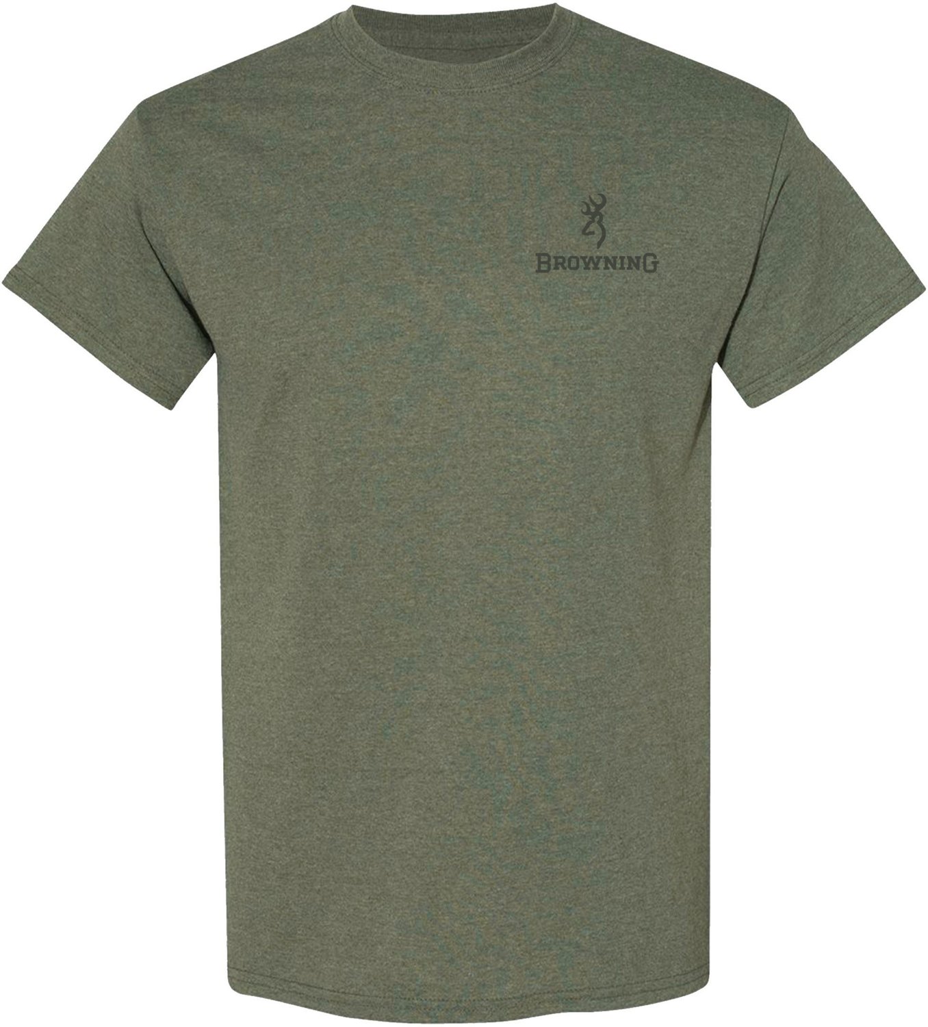 Browning logo on the left chest and a unique Browning signature buckmark graphic on the back