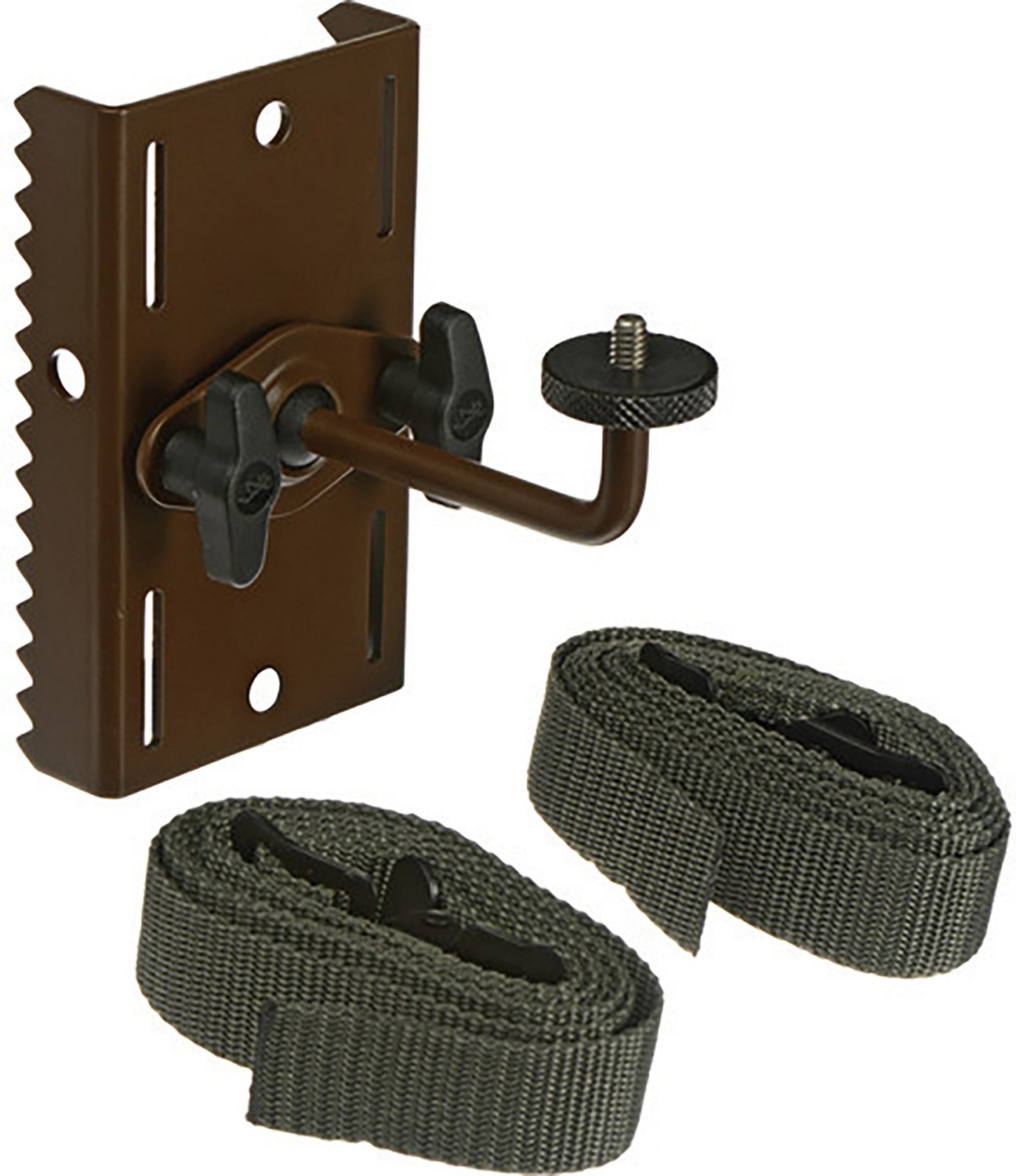 Mount your game camera in a wooded area with the Browning Tree Mount. The heavy-duty webbing straps and steel construction deliver wilderness-ready durability. The adjustable design lets you compensate for crooked trunks and set the perfect angle for wildlife monitoring.