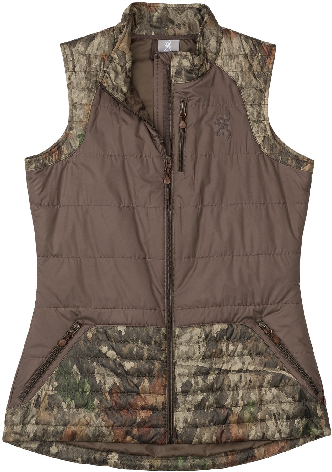 Gear up for the hunt with the Browning Women's Hunting Puffy Vest. Constructed with 100% polyester fabric, this vest provides a comfortable feel all day long, while the synthetic insulation offers increased warmth. Scent control technology and water- and wind-resistant technology work together to keep you fresh and dry throughout your hunt, and the Browningâ„¢ design on the left chest delivers a touch of style.