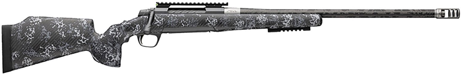 The Browning X-Bolt Pro McMillan CF .300 PRC Bolt Action Rifle is bolt action and has a 3-round capacity. It's built with a heavy sporter stainless and carbon fiber barrel, steel receiver and a DLX trigger. A carbon fiber stock with texture grip panels, top-tang safety with Bolt Unlock Button and a short 60 degree bolt lift finish the design.
