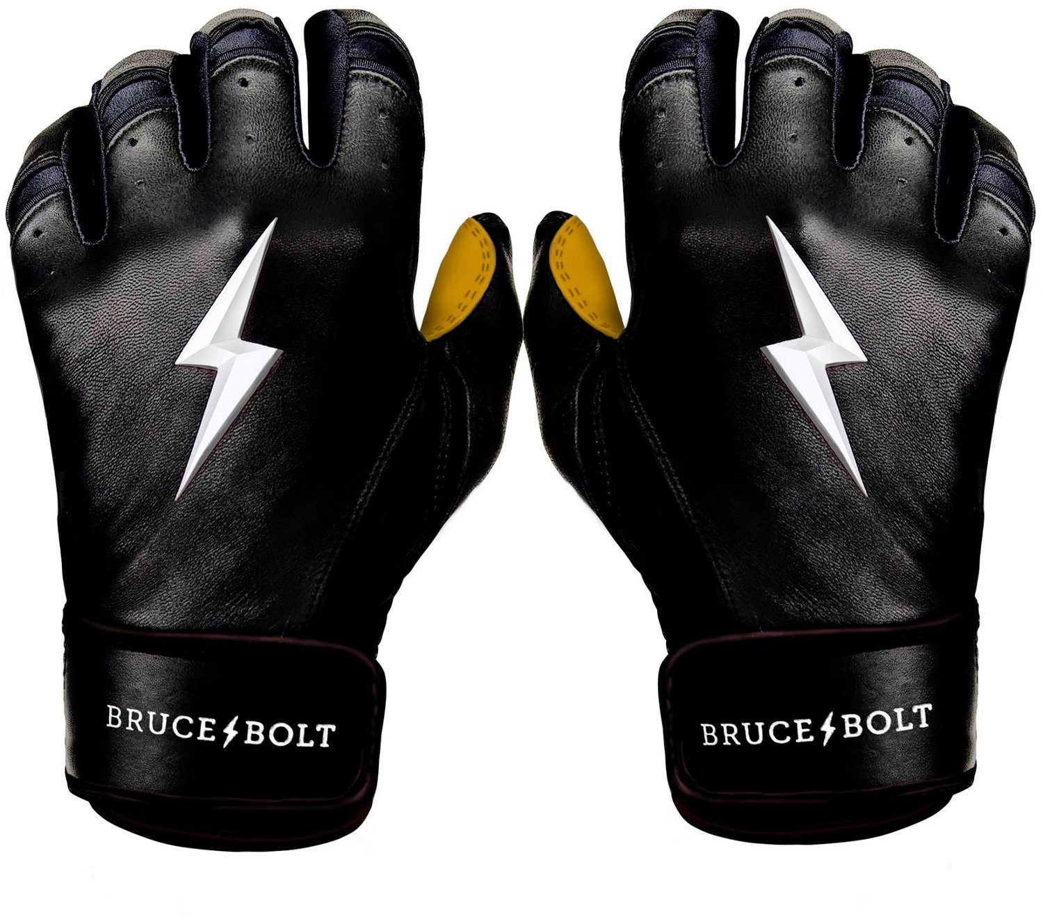 Head to the diamond with the BRUCE BOLT Adults' Premium Pro Short Cuff Batting Gloves. These batting gloves are made of high-quality 0.9mm Cabretta leather for lasting durability and softness. The lycra cuffs are 50% wider for increased wrist support.