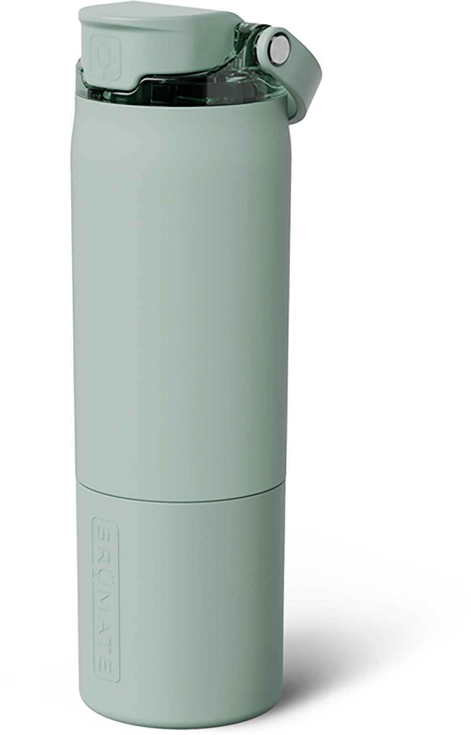Stay hydrated on the go with the BruMate Rise 25 oz. Water Bottle with Flip Lid and Top Handle. Its Bevlock lid ensures a 100% leakproof sipping experience. The MagFlip technology keeps your lid open while you sip for hot, cold, and carbonated beverages with ice, and its ColdKey straw minimizes plastic exposure in your drink, while delivering a cool, crisp sipping experience. The handle provides a durable, easy-carry and storage.