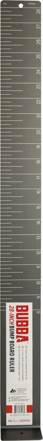 Easily measure the length of your catch with the Bubba 28 in Fish Measuring Board. This anodized aluminum measuring board resists corrosion for lasting durability and can be mounted or tethered to most deck mounts for convenience and easy access. The 90-degree upward fish stop gives you an easily identifiable spot to rest the nose, and the high-contrast design measures in 1/4-inch increments, allowing you to quickly and accurately measure your fish.