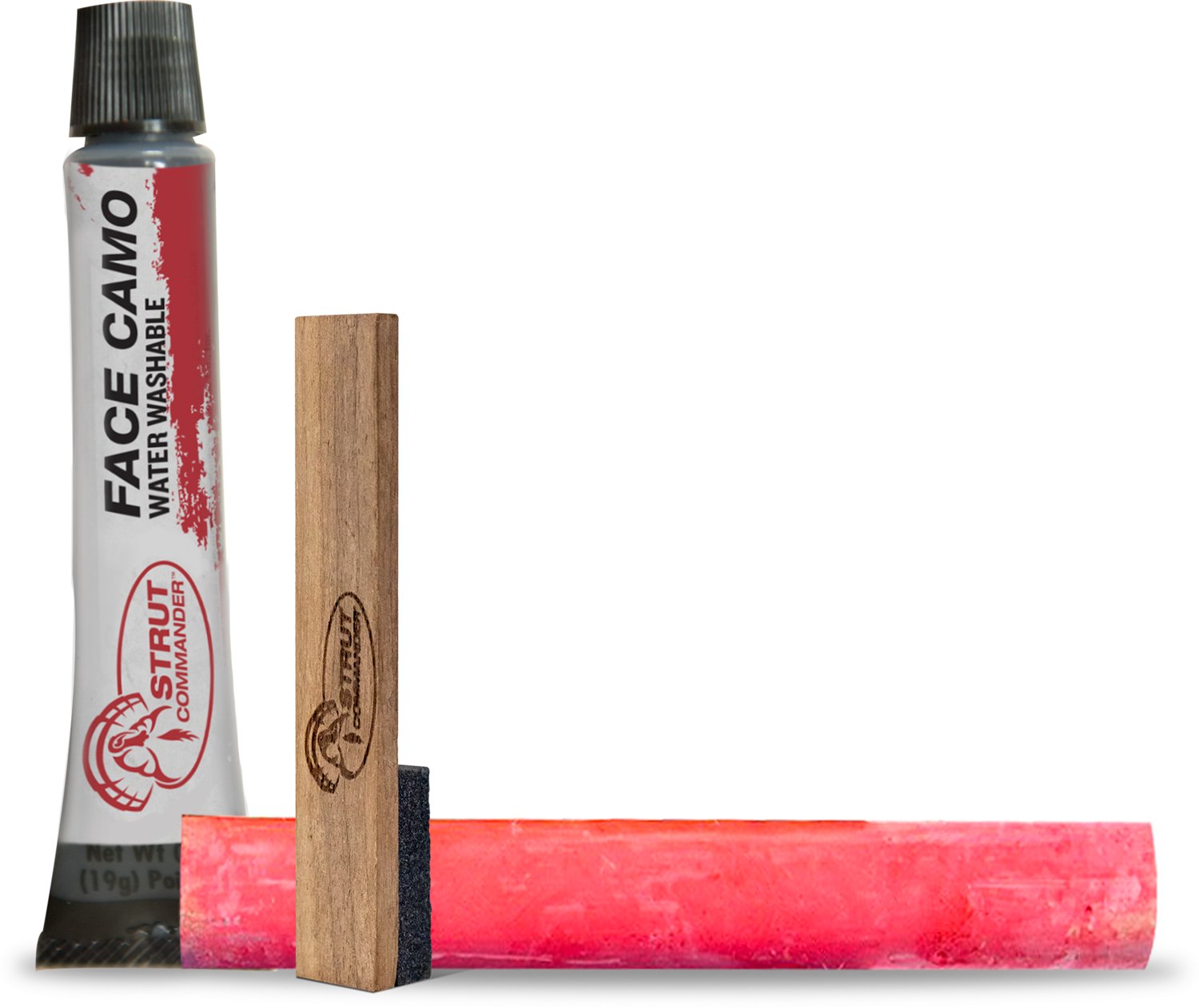 Make sure you are ready for your next hunting trip with the Duck Commander Strut Ready 2.0 Kit. The red chalk makes sure you can condition and tune your box call out in the field, and the smudge proof face camo helps conceal your face out in the woods. A conditioning stick allows you to scratch up the call for effective noises.