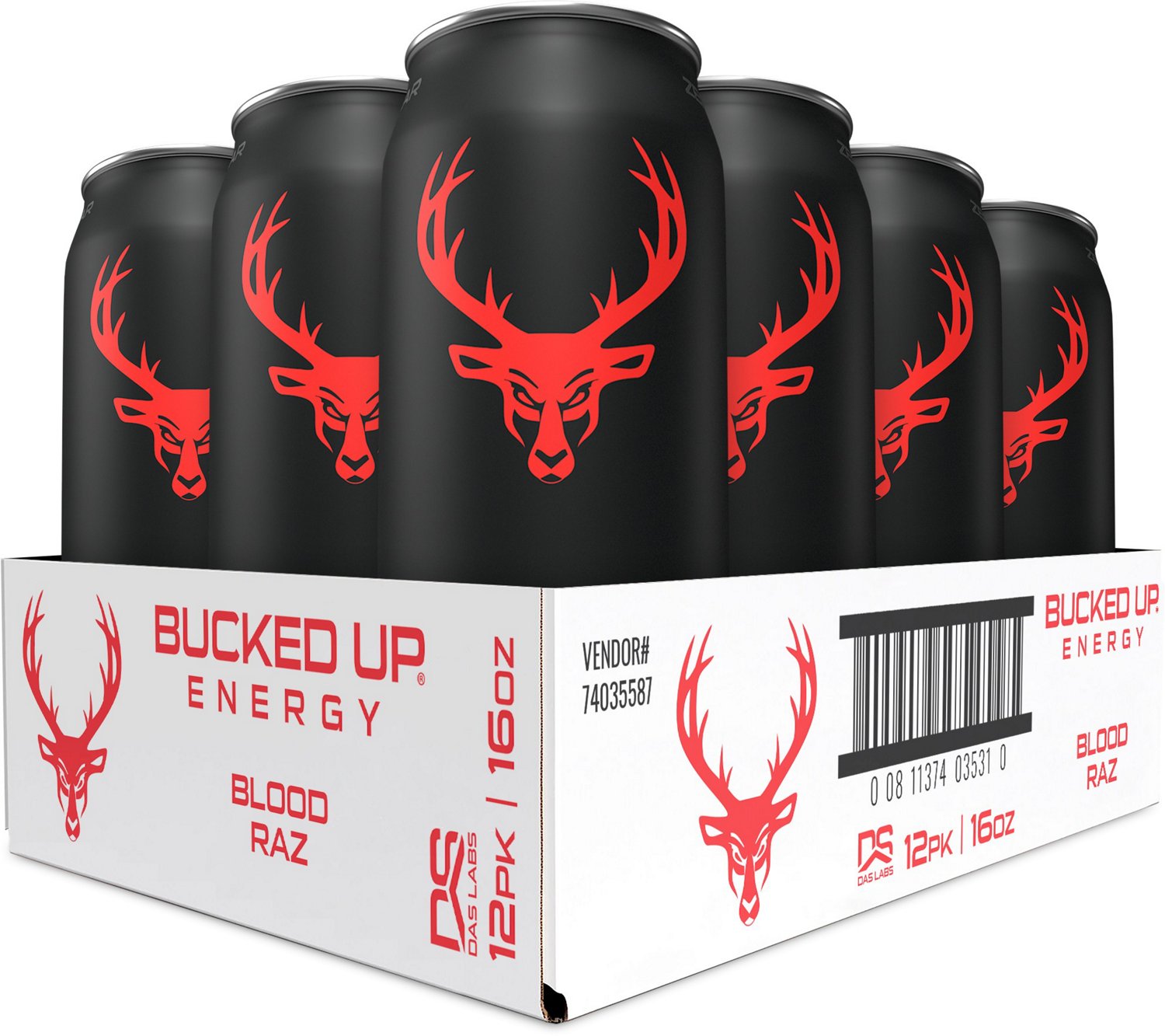 Give yourself a post-workout boost with the Bucked Up Blood Raz Energy Drink 16 oz. 300 milligrams of caffeine combine with nootropics and energy boosters to wake you up and help you focus. A watermelon-like flavor and zero calories per can provide a guilt-free, delicious taste.