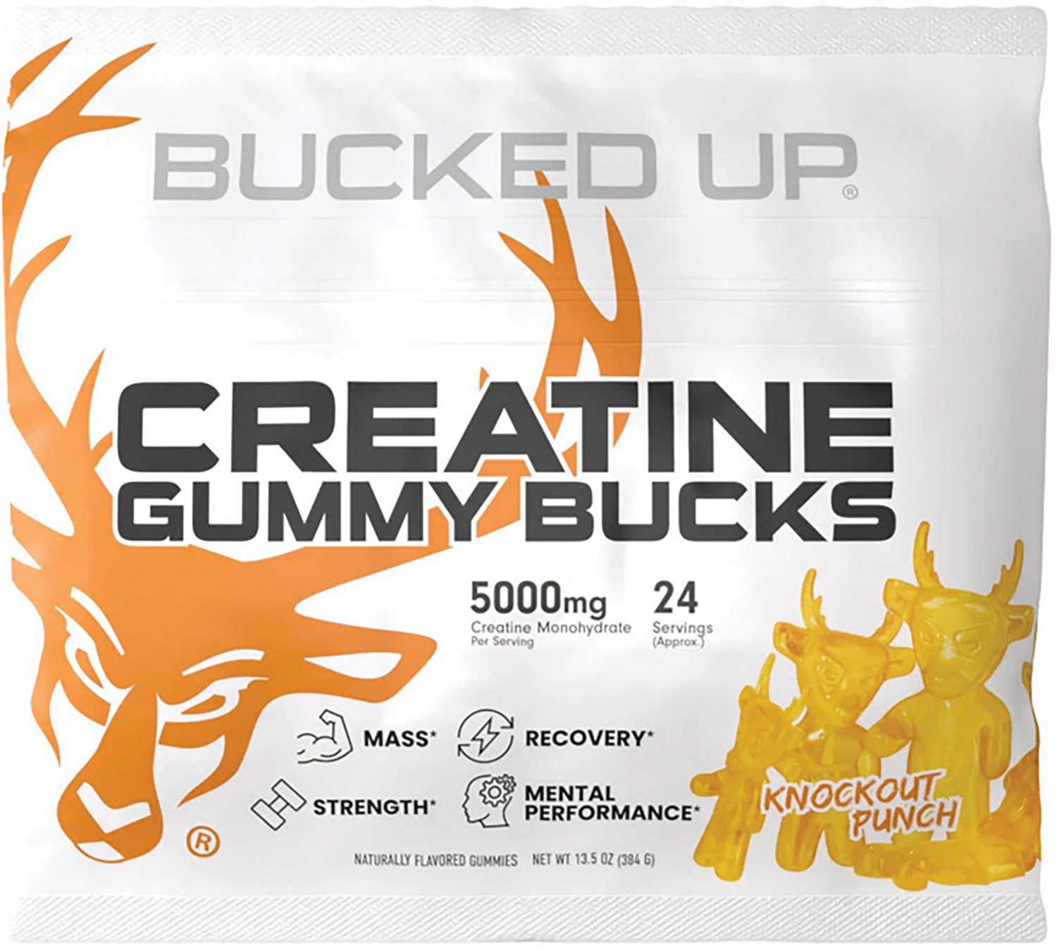 Fuel your workout with the Bucked Up Creatine Gummies 24 Servings. With 5,000 milligrams of creatine monohydrate per serving, these gummies support muscle growth, strength and recovery.