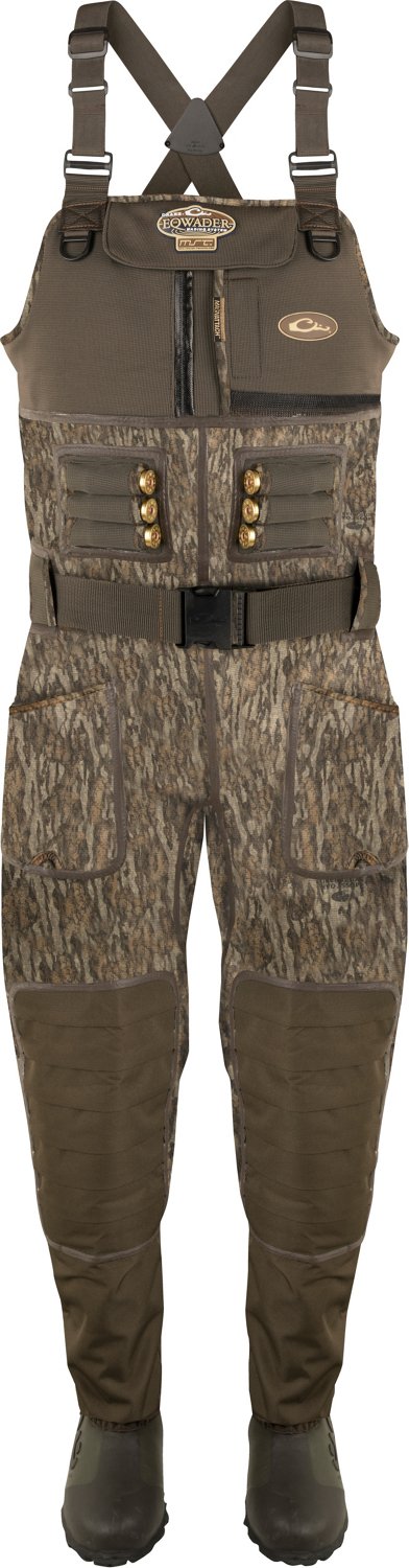 Head outdoors wearing the Drake Waterfowl Men's Buckshot Eqwader 1600 Neoprene 3.0 Stockingfoot Wader. This wader is made from neoprene to help keep you dry, and the adjustable shoulder and waist straps provide a custom fit. There are multiple pockets to hold your essentials, and the outdoorsy print keeps you hidden.