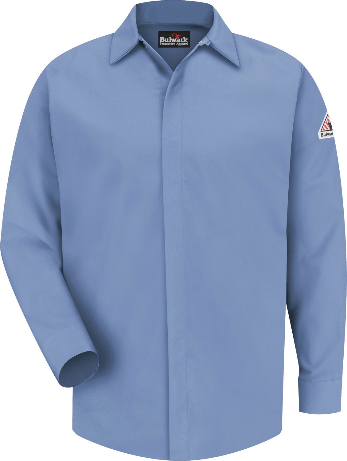 Whether you're at the office or out on the floor, wear the Bulwark Men's Concealed Gripper Work Shirt to help you stay safe and comfortable. Made with CoolTouch® 2 Flame Resistant technology for peace of mind, and the front closure with concealed grippers offers secure wear.