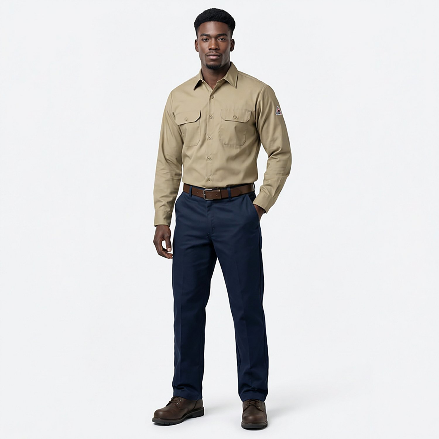 Get the tough jobs done in the Bulwark Men's Excel Flame Resistant ComforTouch Work Shirt. The cotton/nylon blend with integrated Westex Ultrasoft® fabric offers comfort, durability and flame resistance, while the Flame Resistant ont hemmed button-down design promotes a stylish and professional appearance as you go through your day.