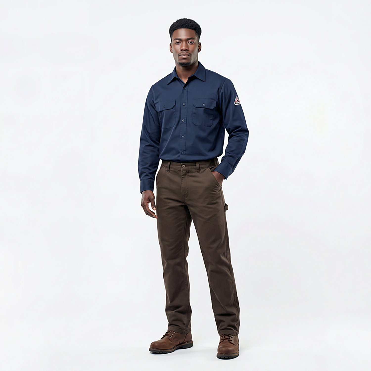 Get ready for your day with the Bulwark Men's Excel Work Shirt. This shirt is made from 100% cotton for comfortable wear, and the flame-resistant technology helps keep you protected as you tackle your tasks for the day.