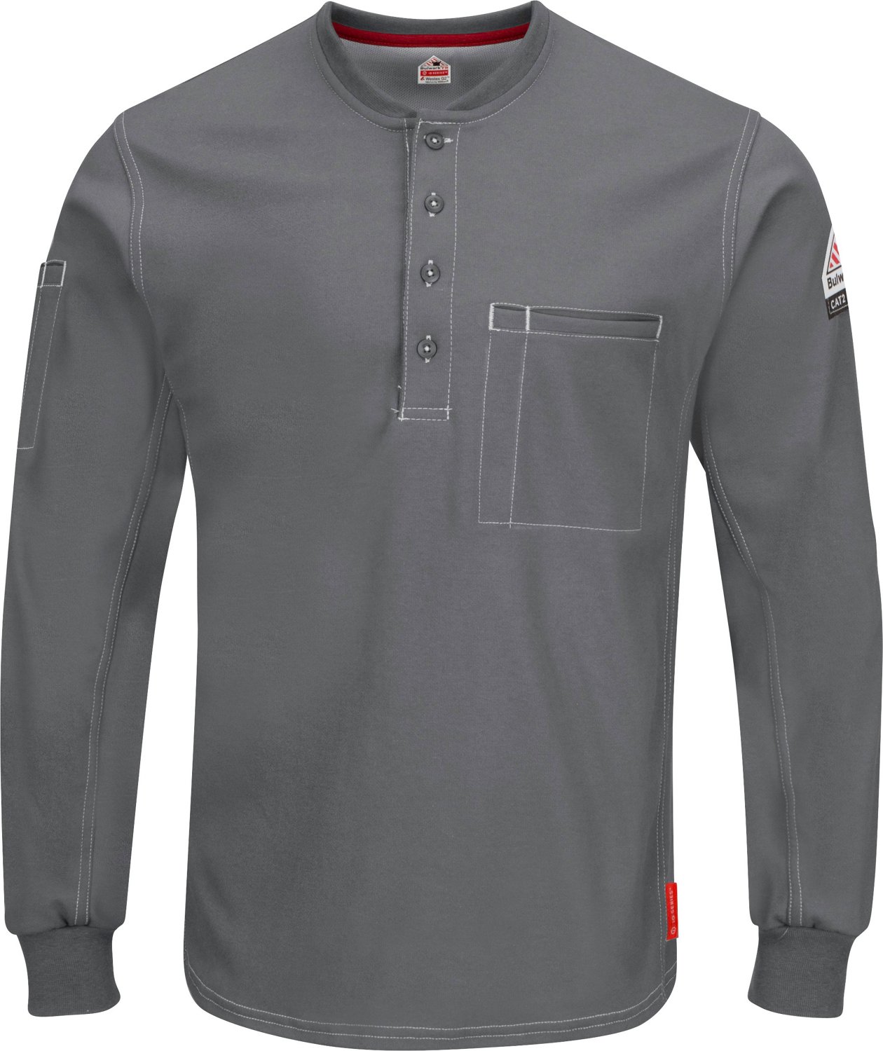 Get the job done in the Bulwark Men's iQ Series Henley Long Sleeve Work Shirt. This work shirt is made with breathable fabric that wicks away moisture to help keep you cool and dry, and the chest pocket makes it easy to carry small items. The flame-resistant design gives you peace of mind, while the contrast-color stitching adds a touch of style.