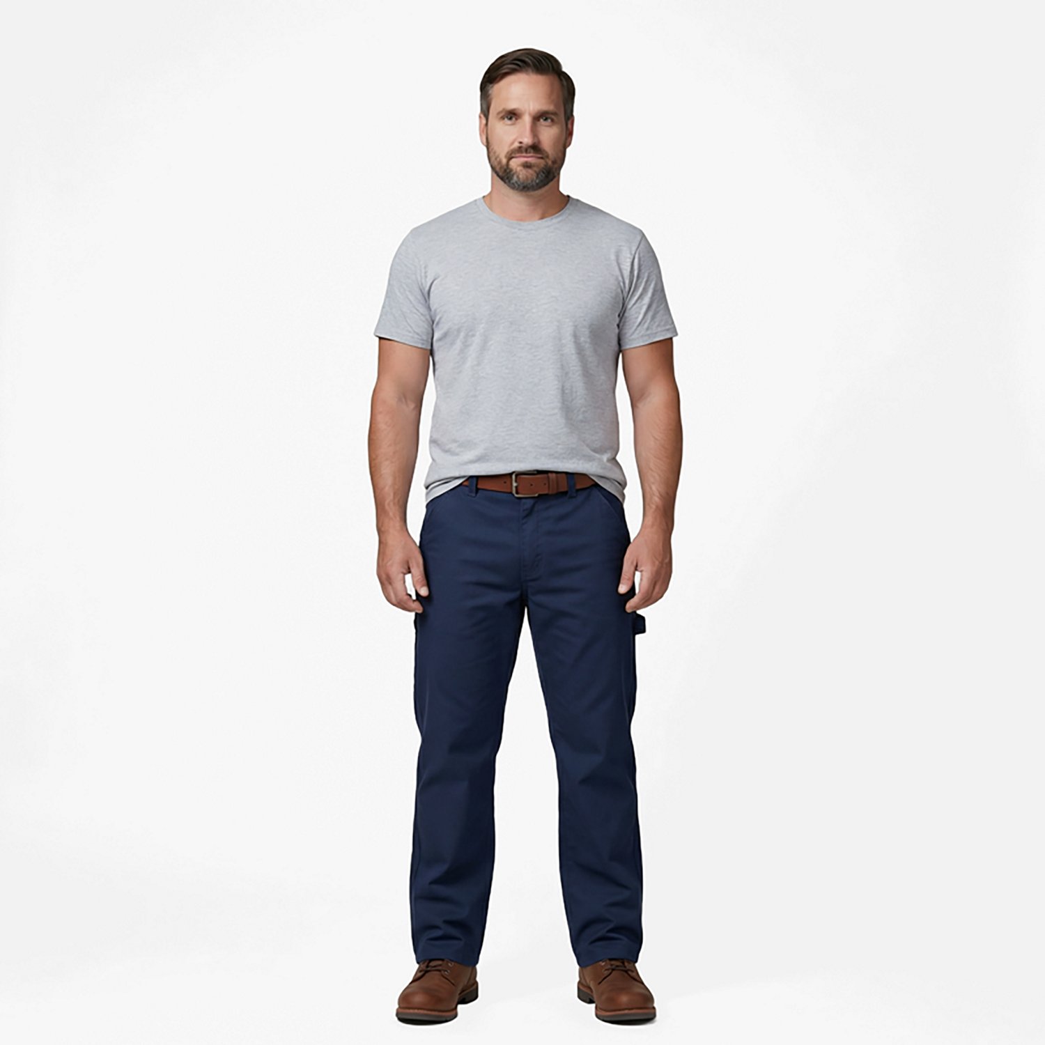 Sits just below the waist with room in the seat and thigh and is fuller at the leg for a classic look