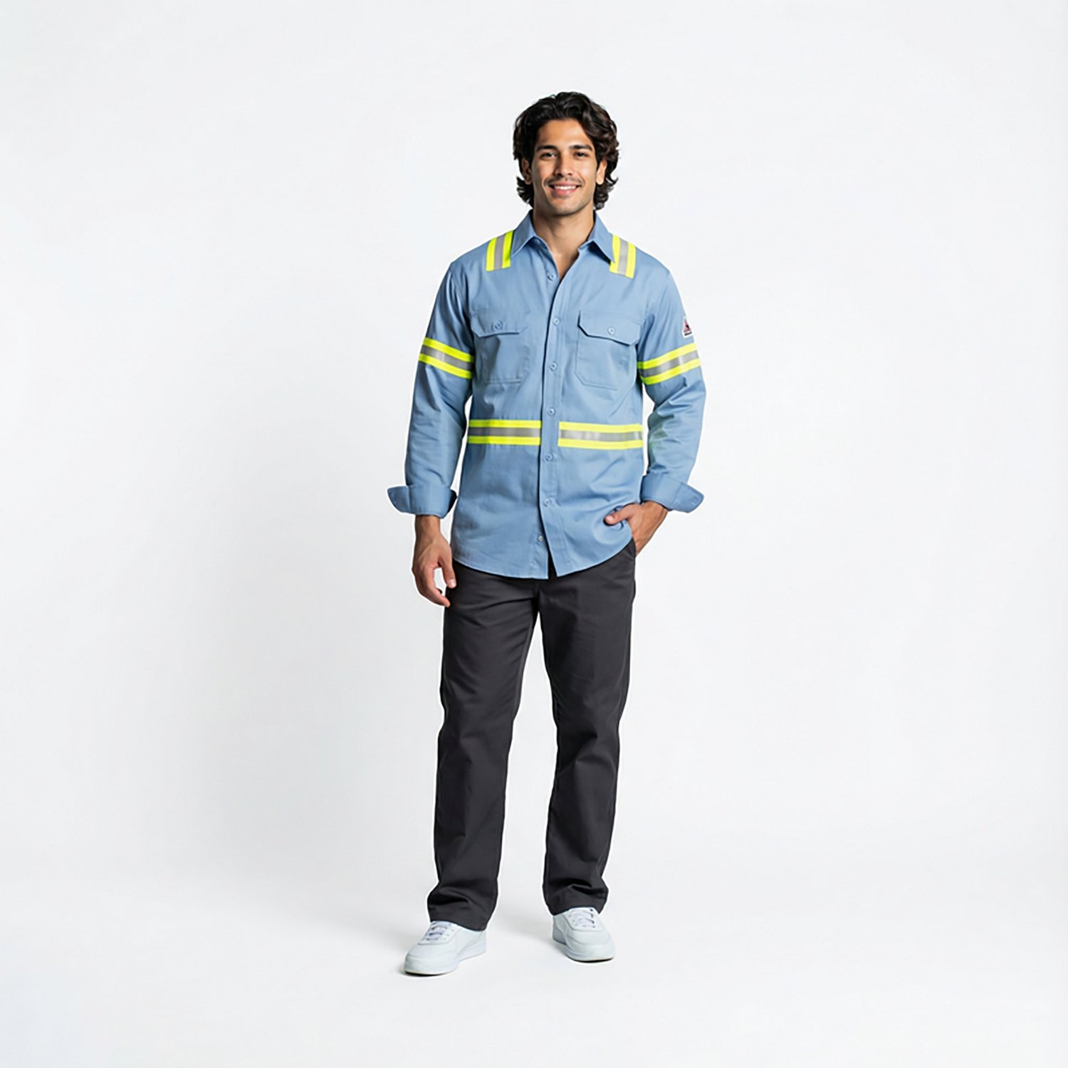 Need CAT 2 protection at work? Wear the Bulwark Men's Midweight Flame Resistant Enhanced Visibility Uniform Shirt. In addition to flame resistance, it also offers 360 degrees of visibility. NFPA® 2112 compliant. 2 pockets.