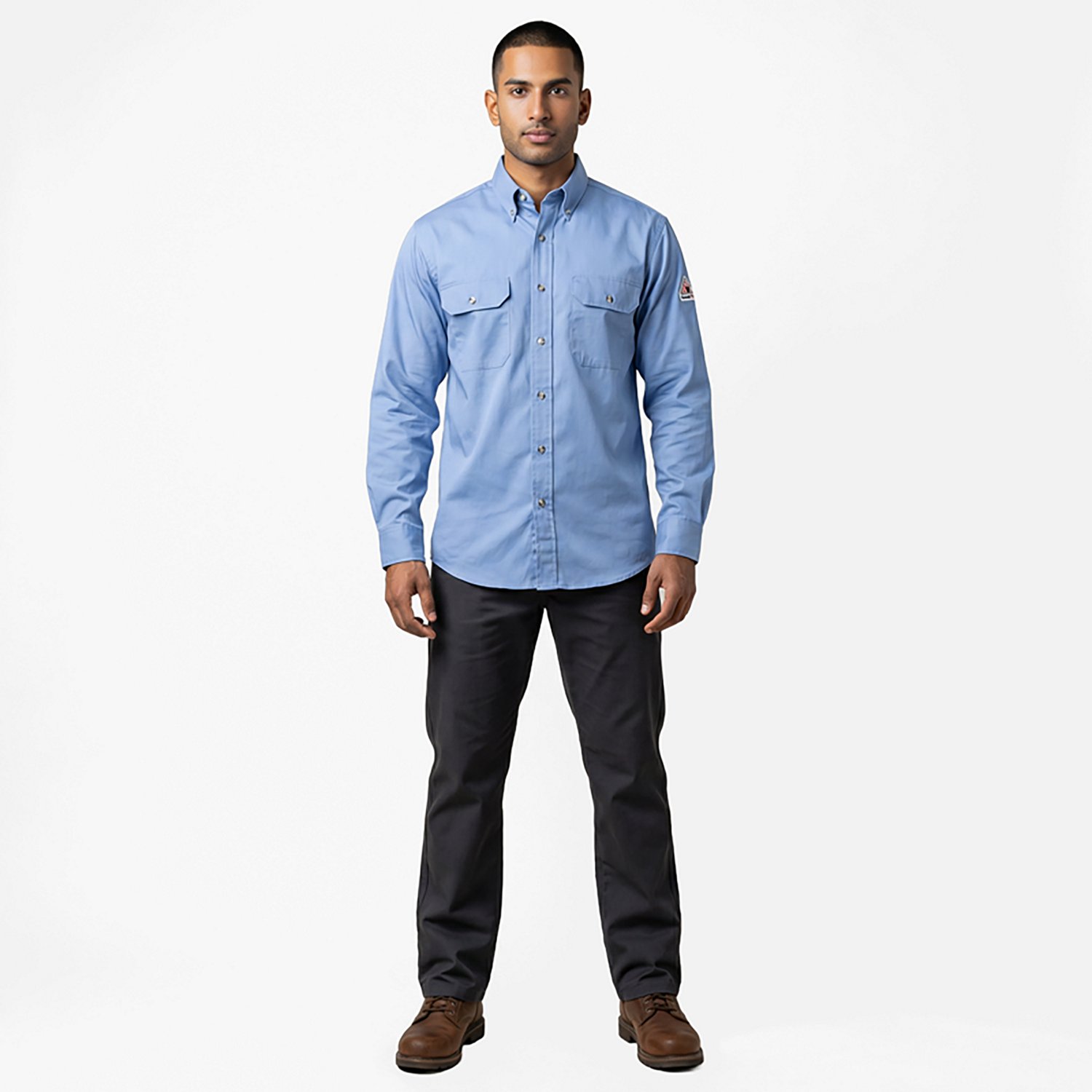 Built to perform, the Bulwark Men's Midweight Flame Resistant Uniform Dress Shirt has your back throughout the work day. It's equipped with Flame Resistant protection to give you peace of mind in hazardous conditions. It's also tailored for a professional appearance and has full underarm gussets for mobility. 2 pockets. NFPA® 2112 compliant.