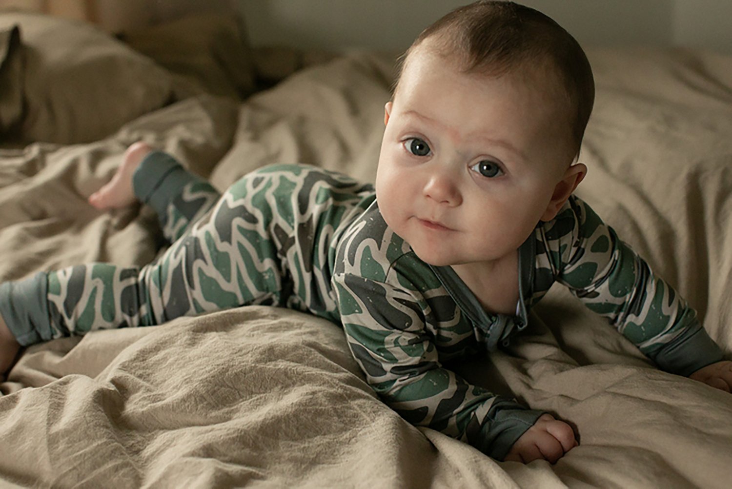 Keep your little one cozy with the BURLEBO Infant Boys' Zip-Up Onesie. The polyester and spandex material provides a comfortable feel, while the foldover foot cuffs and mittens offer warmth. The allover camo print adds a stylish touch.