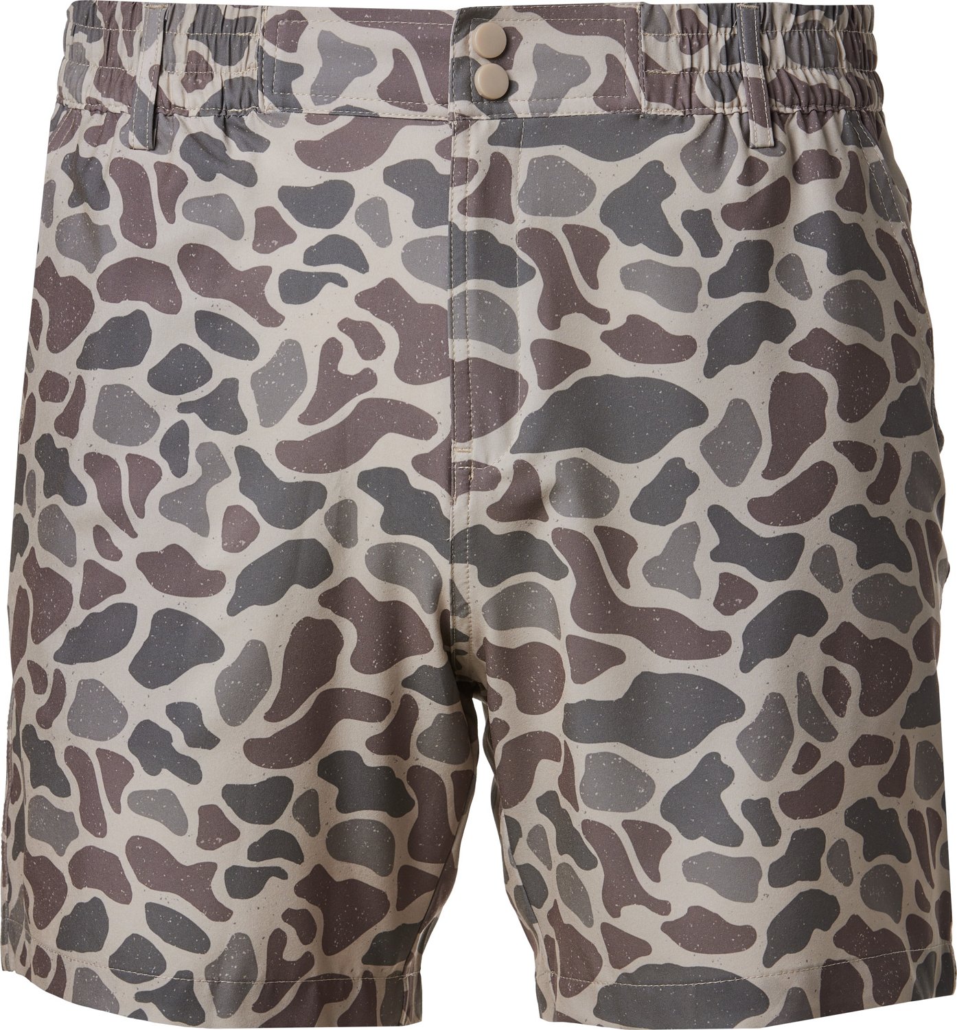 Elastic waistband closes with a zipper fly and rubber button