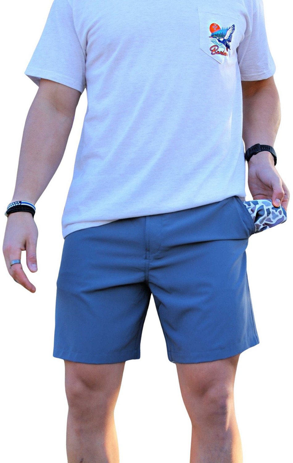 Keep workouts comfortable with BURLEBO Men's Everyday Shorts. The polyester-spandex blend stretches 4 ways for easy mobility, while fibers wick away sweat to keep you cool and dry. The all-over print and patriotic pocket elevate your look.