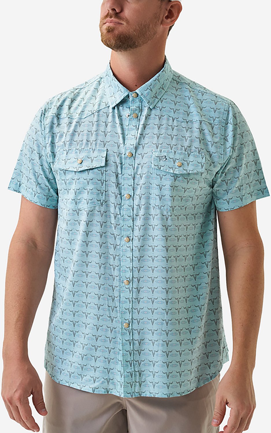 Enjoy stylish functionality with the BURLEBO Men's Performance Western Shirt. The polyester and spandex material provides a comfortable feel, while the moisture wicking technology helps keep you cool and dry.