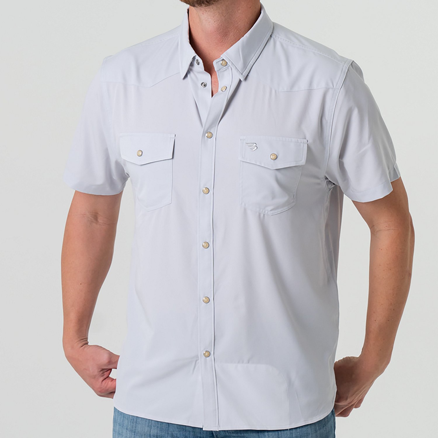 • Button down closure with pearl snap buttons