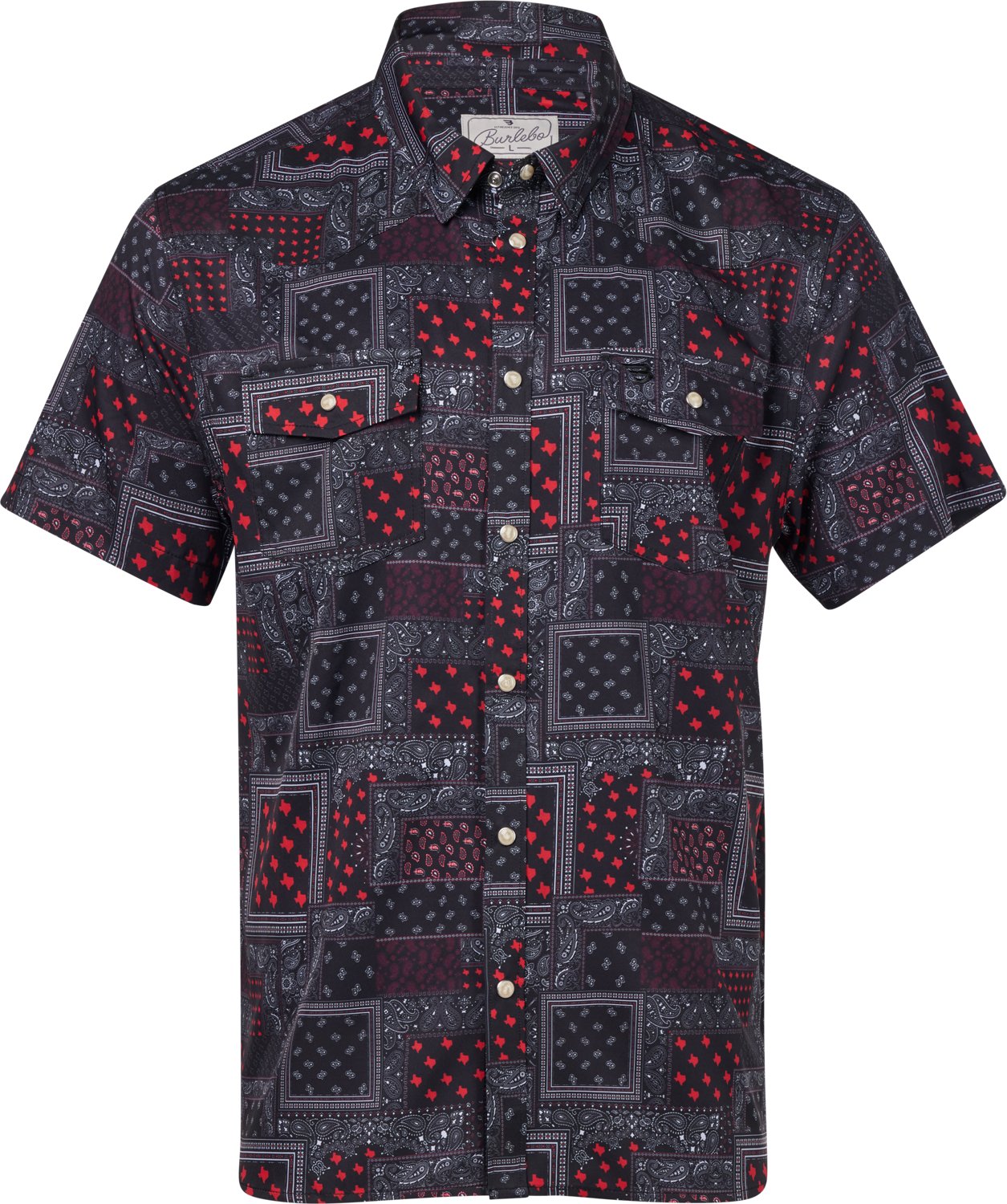 Enjoy comfort and style with the Burlebo Men's Texas Performance Short Sleeve Western Shirt. The moisture-wicking fabric draws sweat away from your skin for all-day cooling comfort, and the sun-blocking material helps protect against harmful UV rays.
